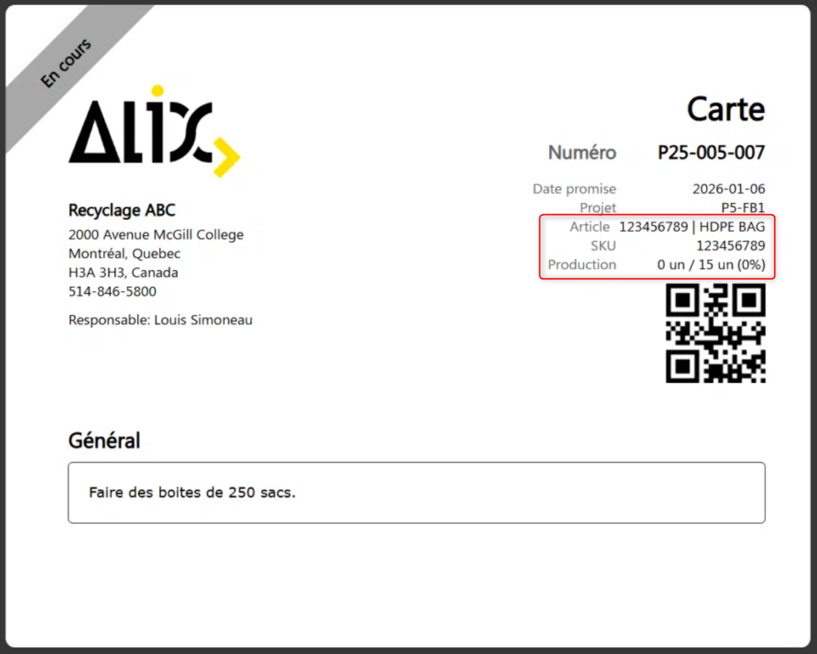 Le PDF d’instructions de travail affiche maintenant quelques informations supplémentaires concernant la production :