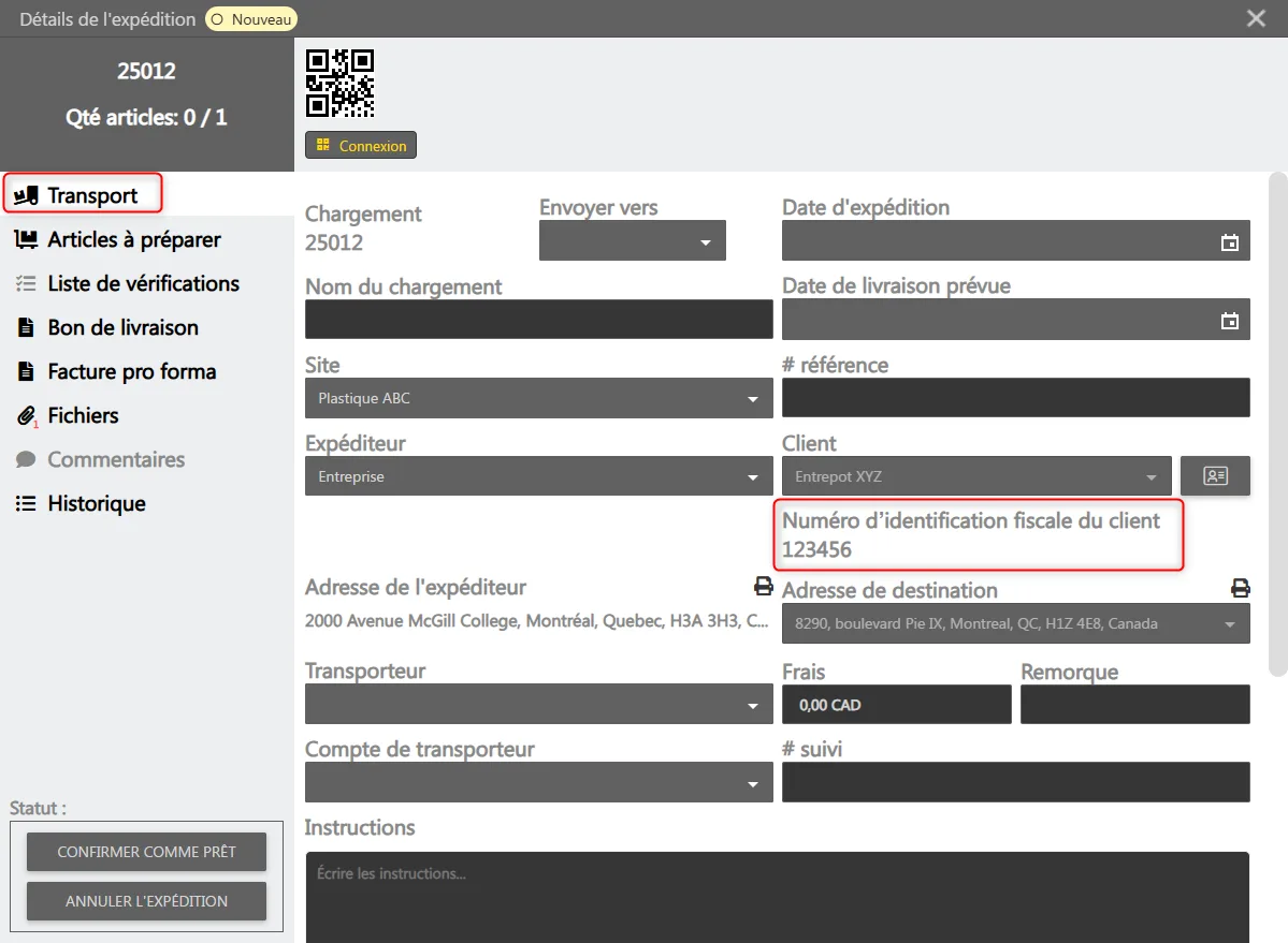 Ajoutez et gérez le numéro d'identification fiscale dans les fiches clients, visible aussi dans les expéditions.