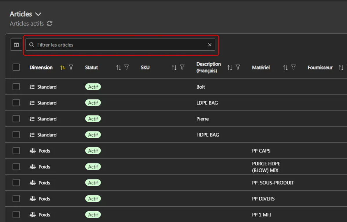 Ces améliorations s’appliquent à l’ensemble des listes où une recherche est possible, comme la liste des articles, des commandes clients, etc.