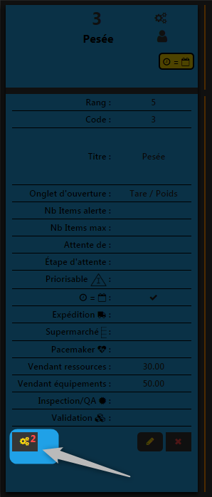 Pour faire cette configuration, rendez-vous dans les configurations de chaînes de valeurs, choisissez l’étape à laquelle vous voulez ajouter ou modifiez un équipement. Vous pouvez ajouter un équipement déjà ajouté et configurer le nombre maximum d’items pouvant être placés sur cet équipement à cette étape spécifiquement.